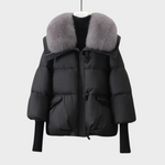• Cuello de piel lujoso: Un cuello de piel sintética suave y voluminoso que te mantiene abrigada y aporta un toque de elegancia a tu conjunto.