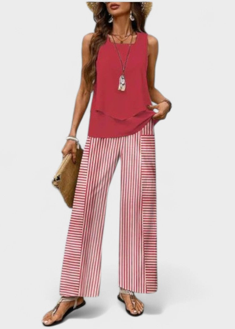 Isis | Conjunto de Dos Piezas con Top Sin Mangas y Pantalones de Corte Recto