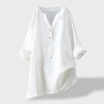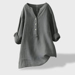 Confeccionada con un tejido de lino ligero y transpirable, la Beatriz|Camisa Ligera de Lino para Verano ofrece el equilibrio perfecto entre sofisticación relajada y comodidad diaria. Su corte suelto, escote en V y botones delicados la convierten en una prenda versátil, ideal tanto para el día a día como para ocasiones especiales. La manga larga con posibilidad de doblar añade un toque práctico y elegante. Una elección ideal para quienes buscan estilo, frescura y calidad en una sola prenda.