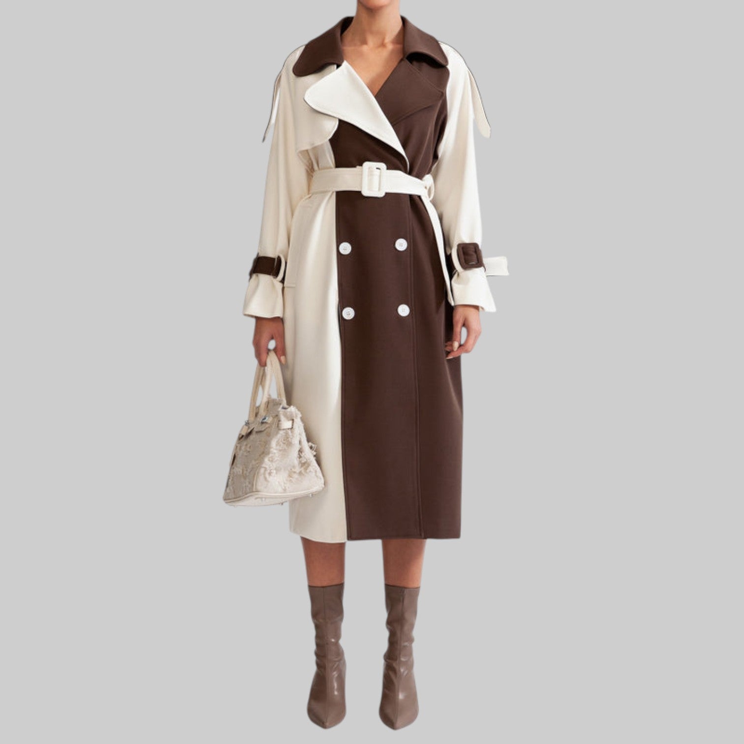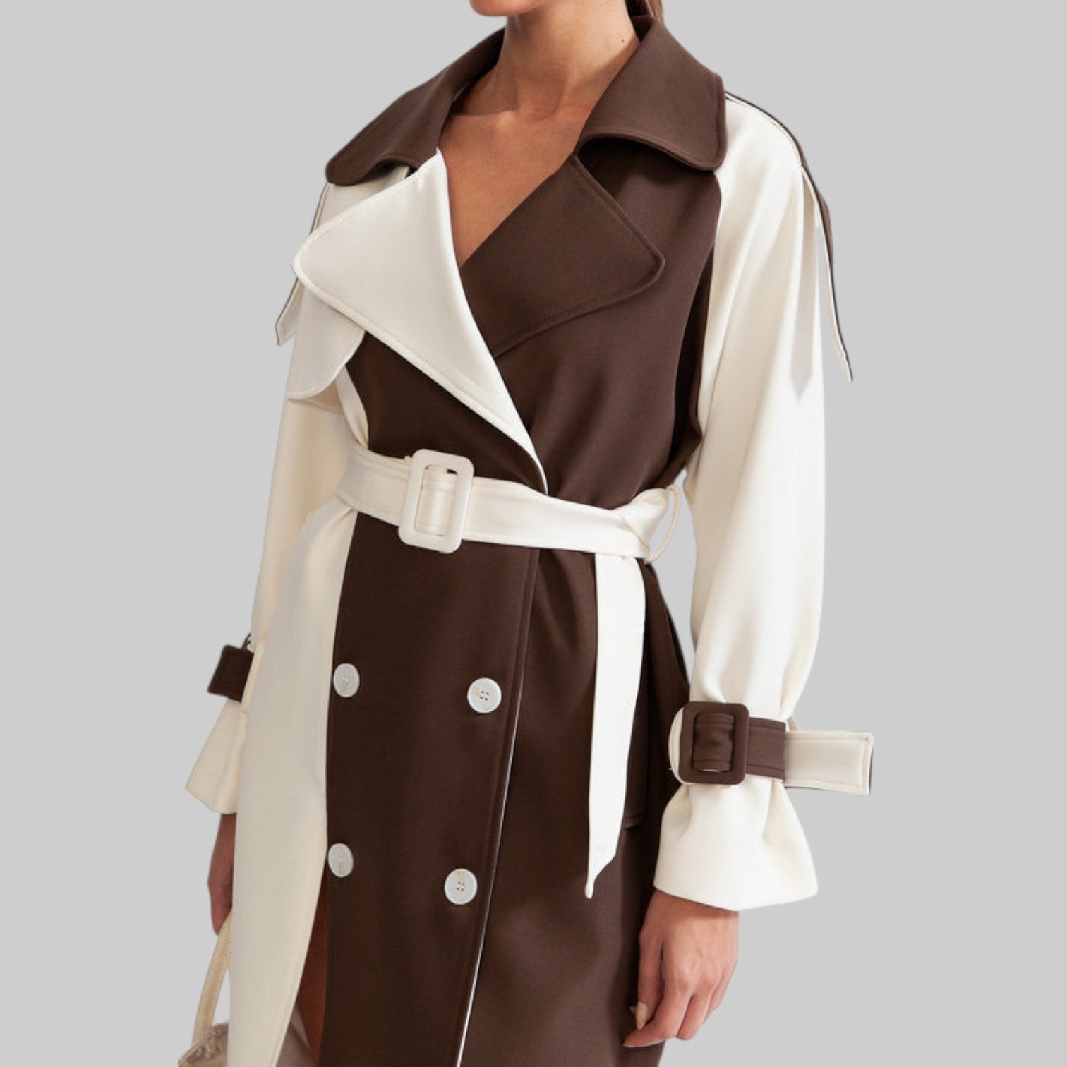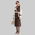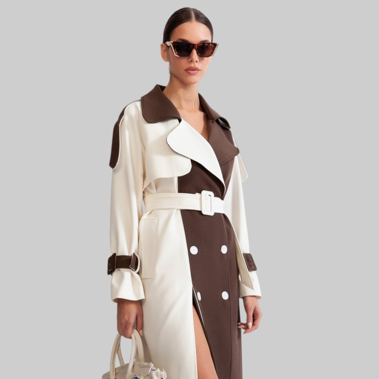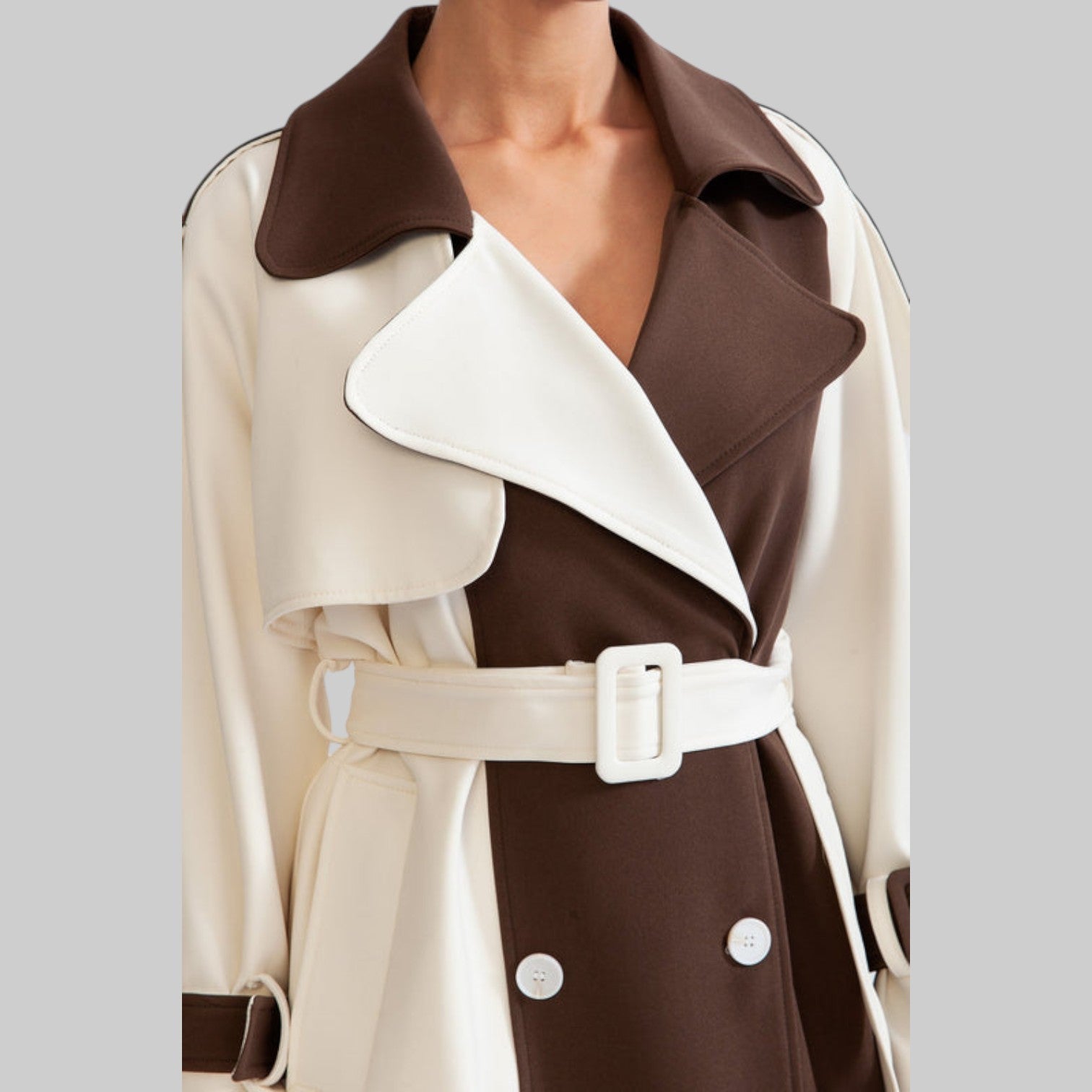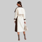 Esta gabardina clásica ofrece un look atemporal y elegante con su diseño en bloques de color crema y marrón. Confeccionada en un tejido elegante, cuenta con todos los detalles clave, como cinturón en la cintura, bolsillos laterales, cinturón ajustable y cierre con botones. Vístete con sofisticación sin esfuerzo.
